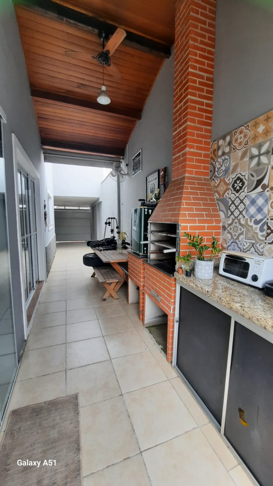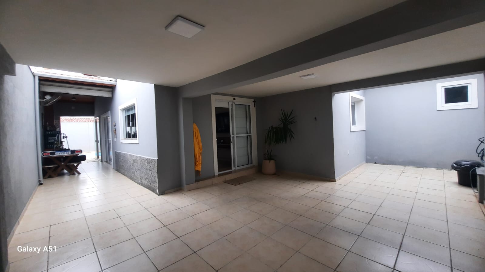 Corredor lateral espaçosos onde encontra-se uma área gourmet com churrasqueira. Garagem com portão automático para 03 carros . Nos fundos tem uma piscina e um quarto enorme com 01 banheiro social.