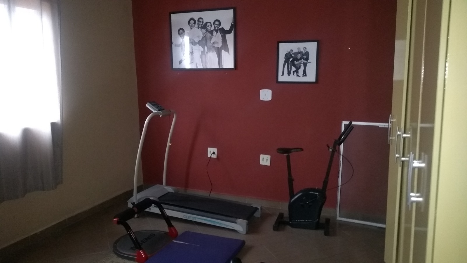 Piso inferior: 5 salas; 2 banheiros; 1 cozinha; quintal com varanda; 1 banheiro e 1 quarto de despejo (garagem para 4 carros coberta);